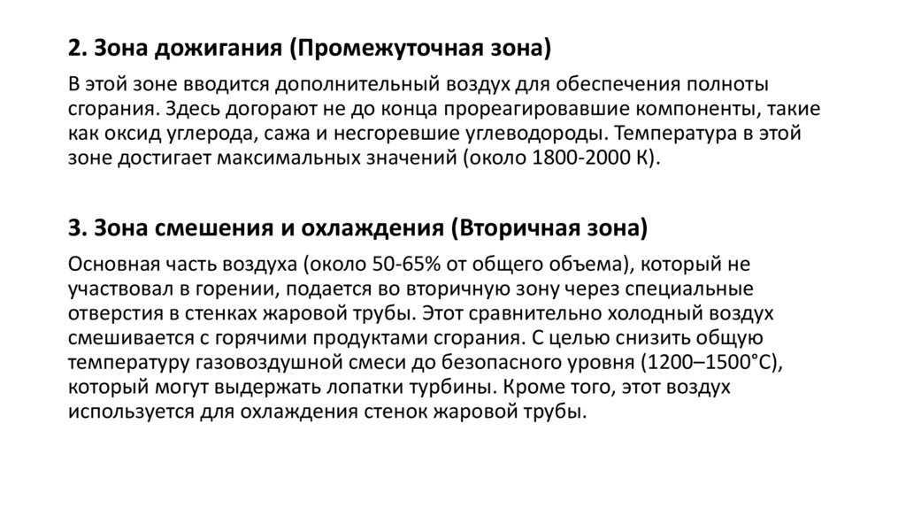 2. Зона дожигания (Промежуточная зона)В этой зоне вводится дополнительный воздух для обеспечения полноты