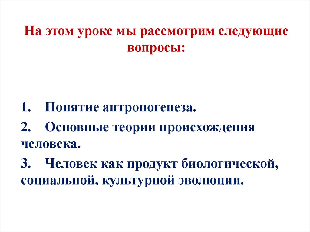 1. Понятие антропогенеза.
