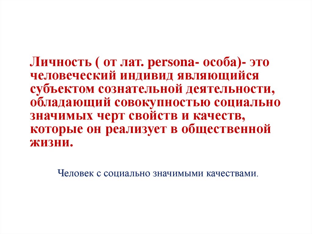 Личность ( от лат. persona- особа)- эточеловеческий индивид являющийся