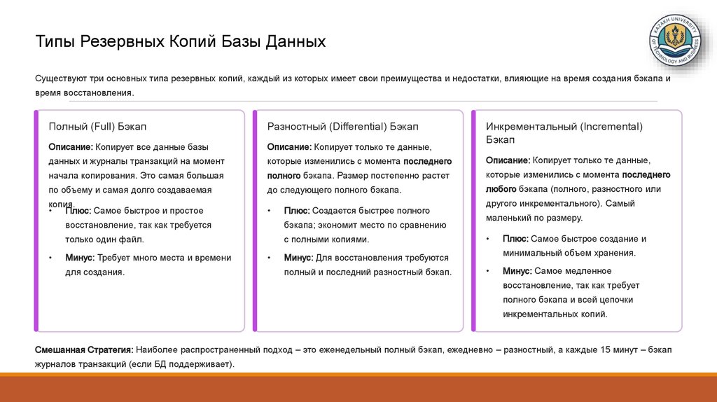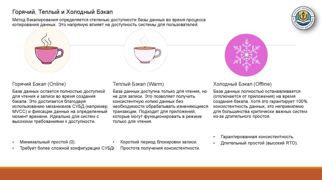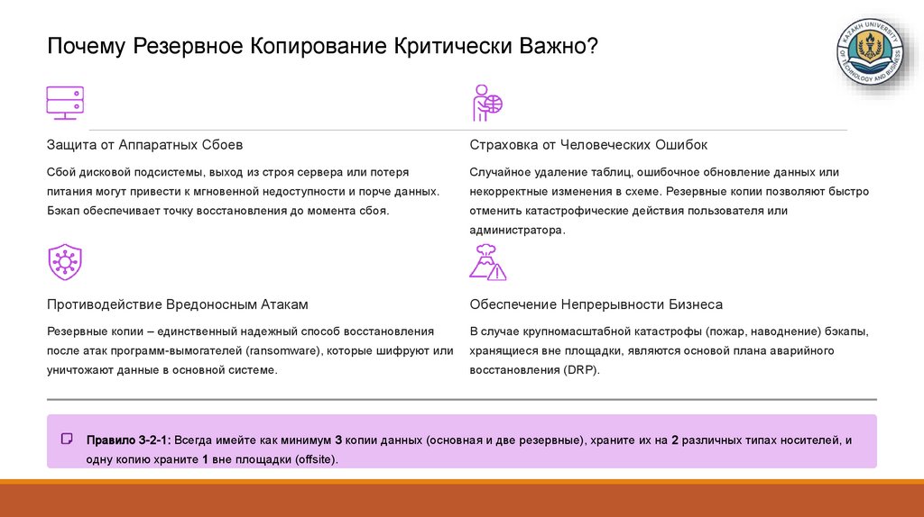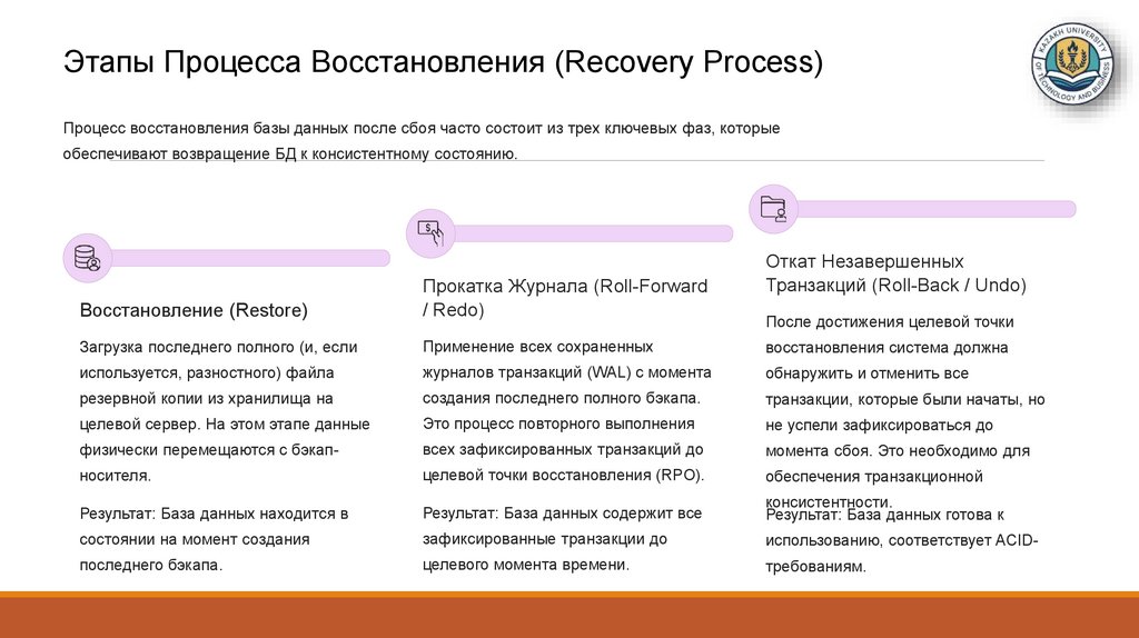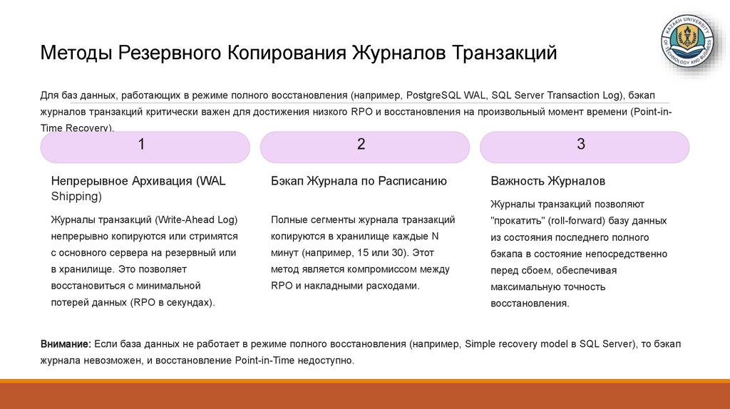 (Журналы транзакций, резервное копирование, контроль целостности и восстановления.)
