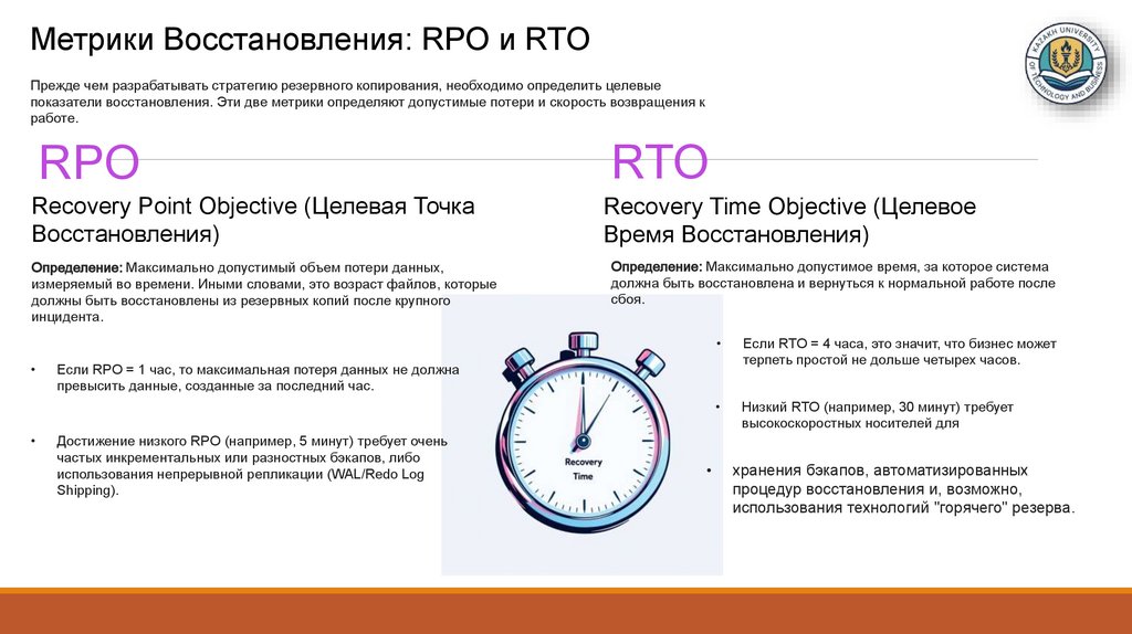 точность и скорость выполнения процедур восстановления (RTO).