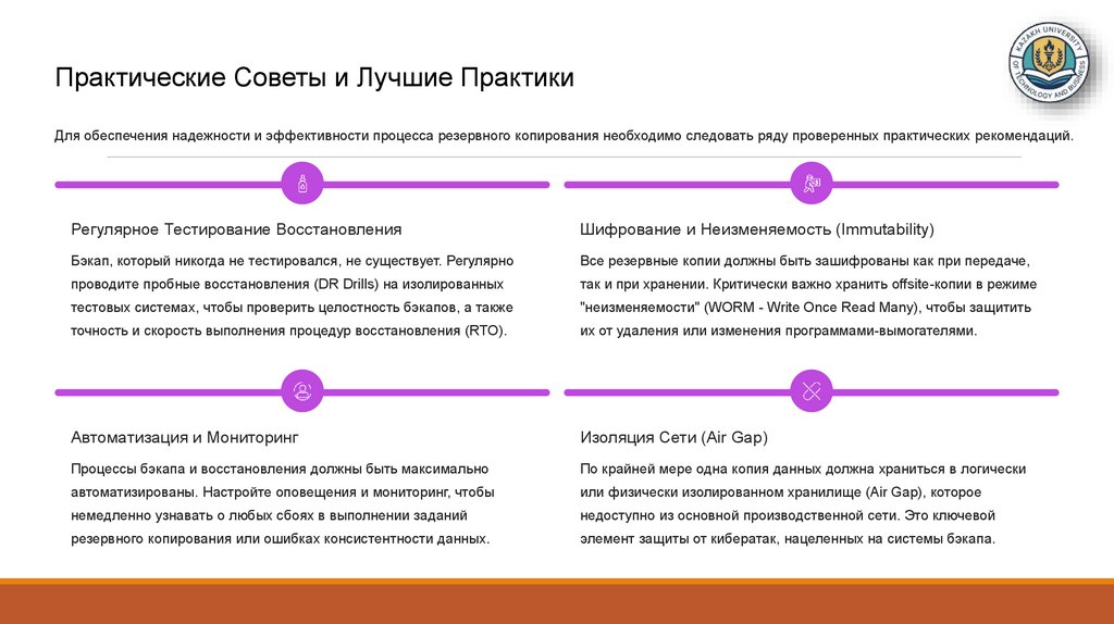 Практические Советы и Лучшие ПрактикиДля обеспечения надежности и эффективности процесса резервного копирования необходимо следовать ряду проверенных практических рекомендаций.