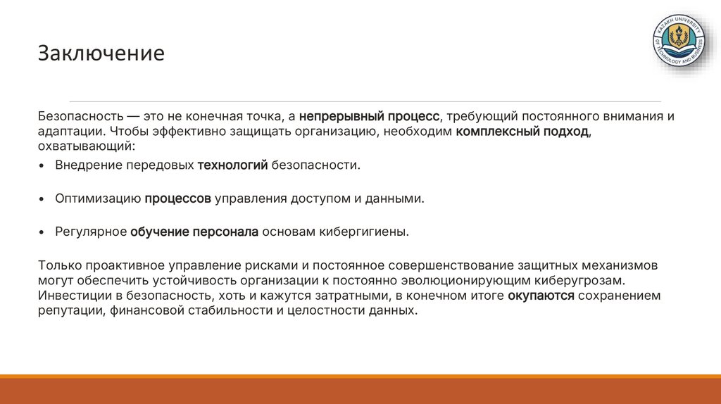 ЗаключениеБезопасность — это не конечная точка, а непрерывный процесс, требующий постоянного внимания и