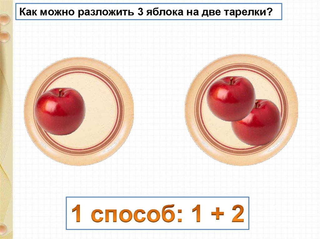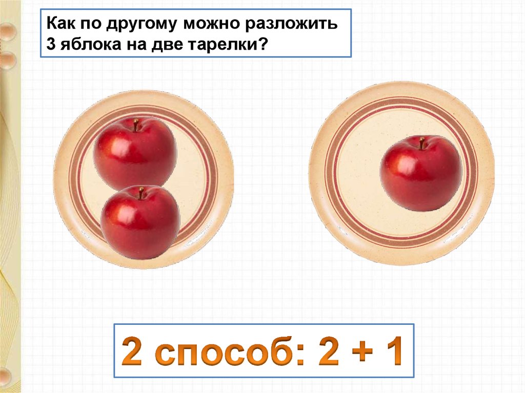 Как по другому можно разложить3 яблока на две тарелки?
