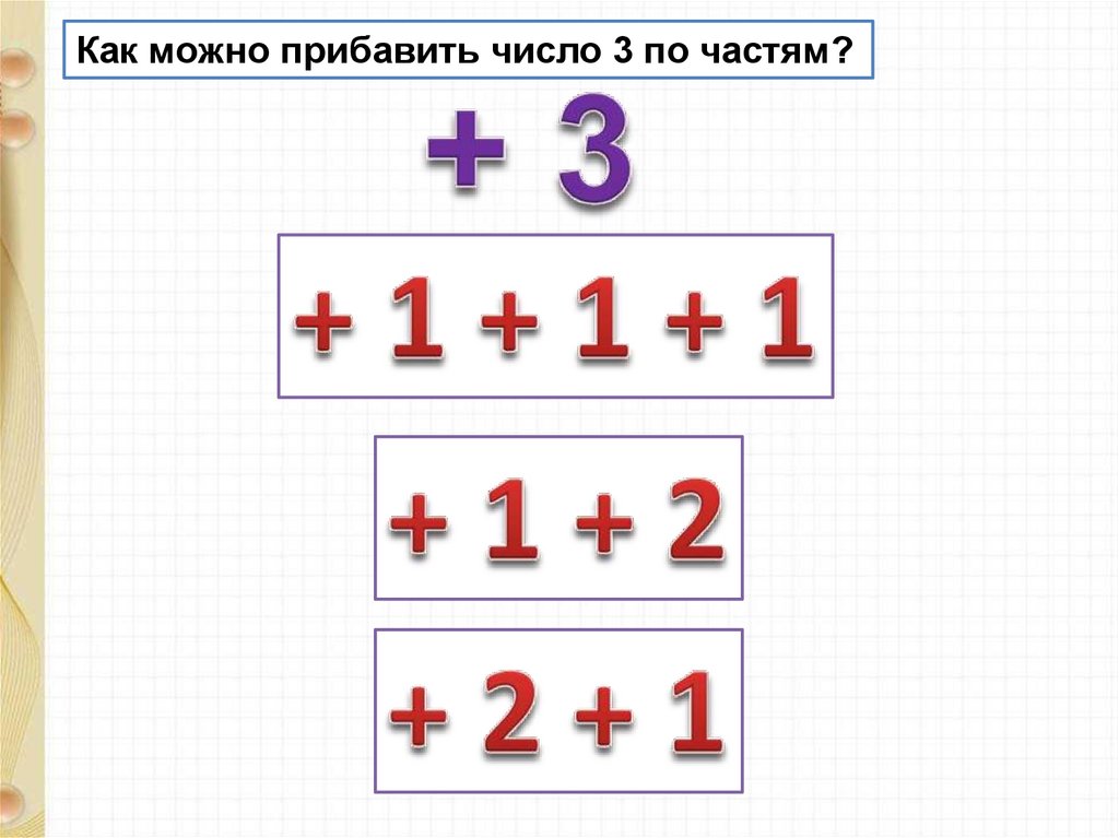 Как можно прибавить число 3 по частям?6.
