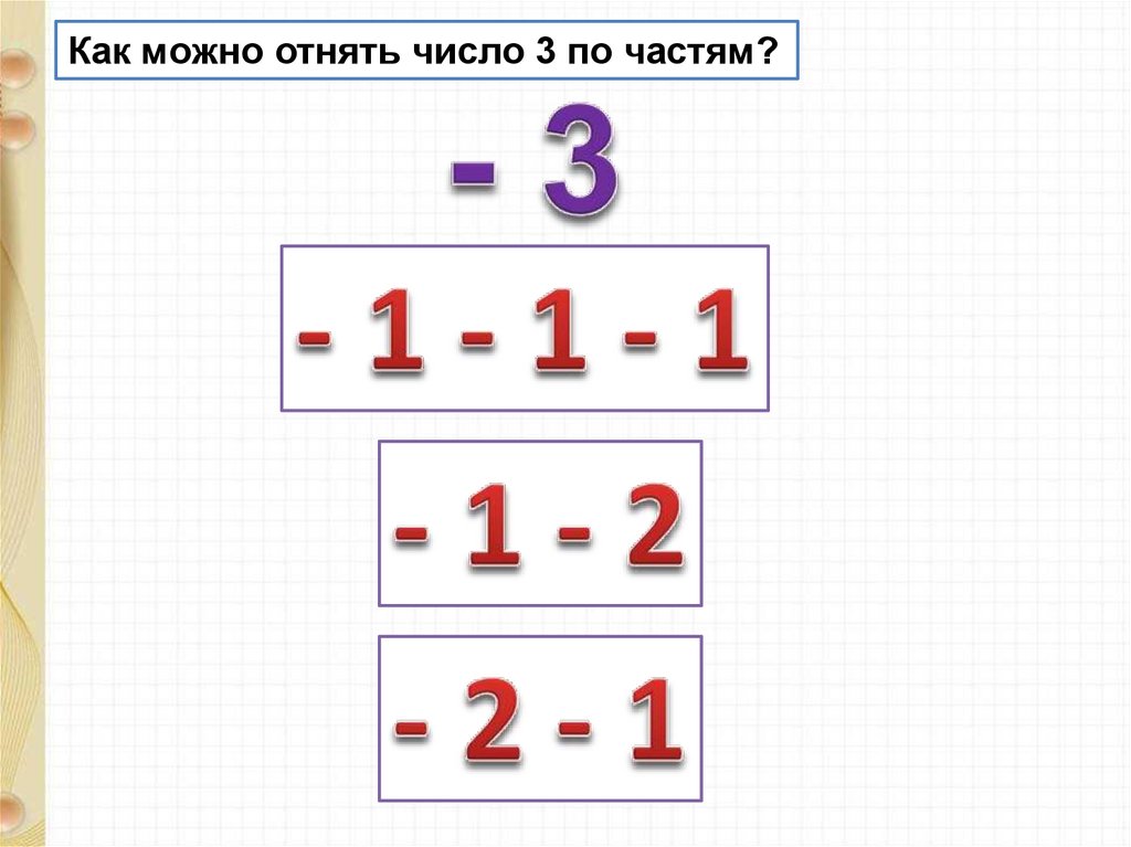 Как можно отнять число 3 по частям?7.