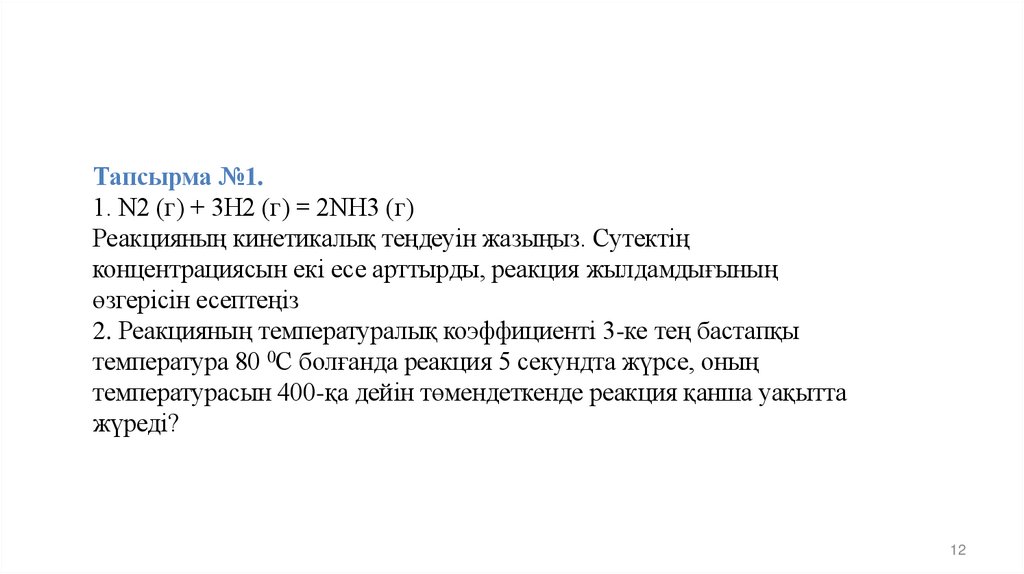 Тапсырма №1.1. N2 (г) + 3H2 (г) = 2NH3 (г)