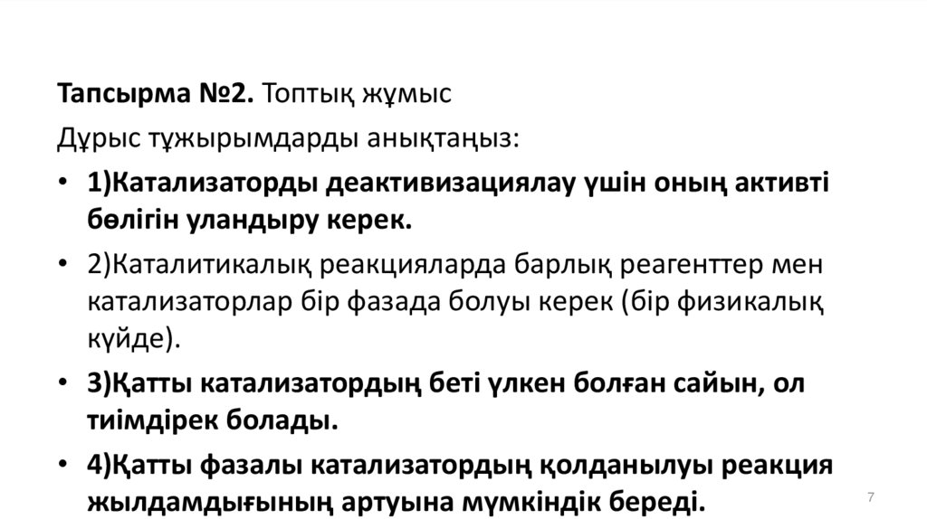 • 1)Катализаторды деактивизациялау үшін оның активті