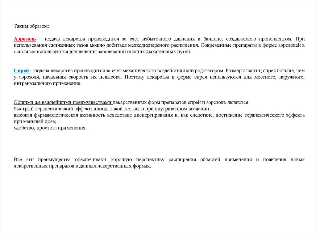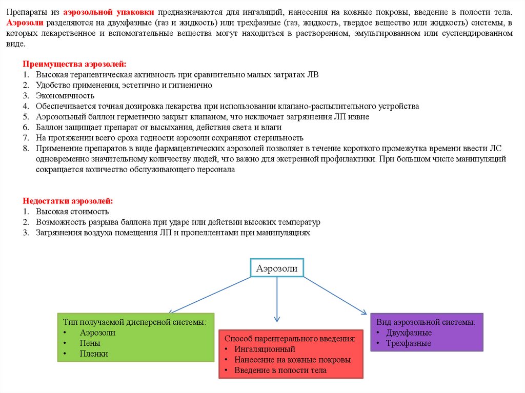 Аэрозоли – лекарственная форма, представляющая собой растворы, эмульсии, суспензии лекарственных