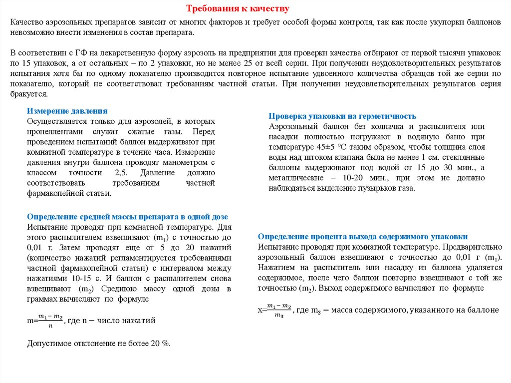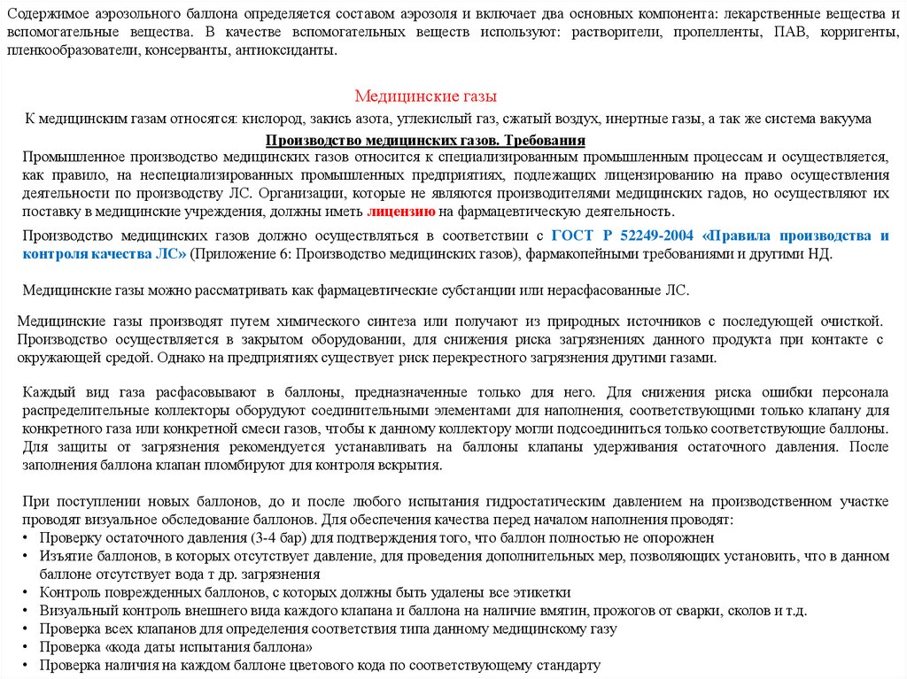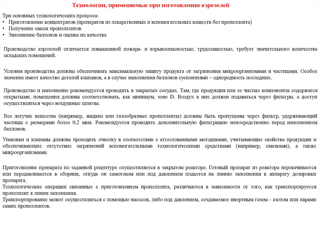 Технология производствагазообразных лекарственных форм