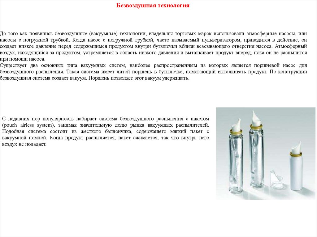 отличием спреев от аэрозолей является отсутствие избыточного давления в упаковке.