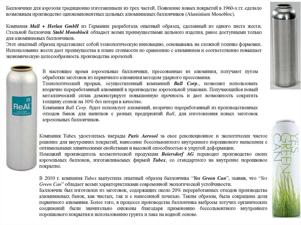 Активное развитие аэрозольных упаковок началось в США в 1941 г., первые баллоны предназначались для уничтожения насекомых с
