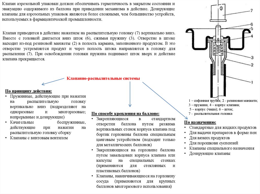 снабженной клапанно-распылительной системой (дозирующей или недозирующей).