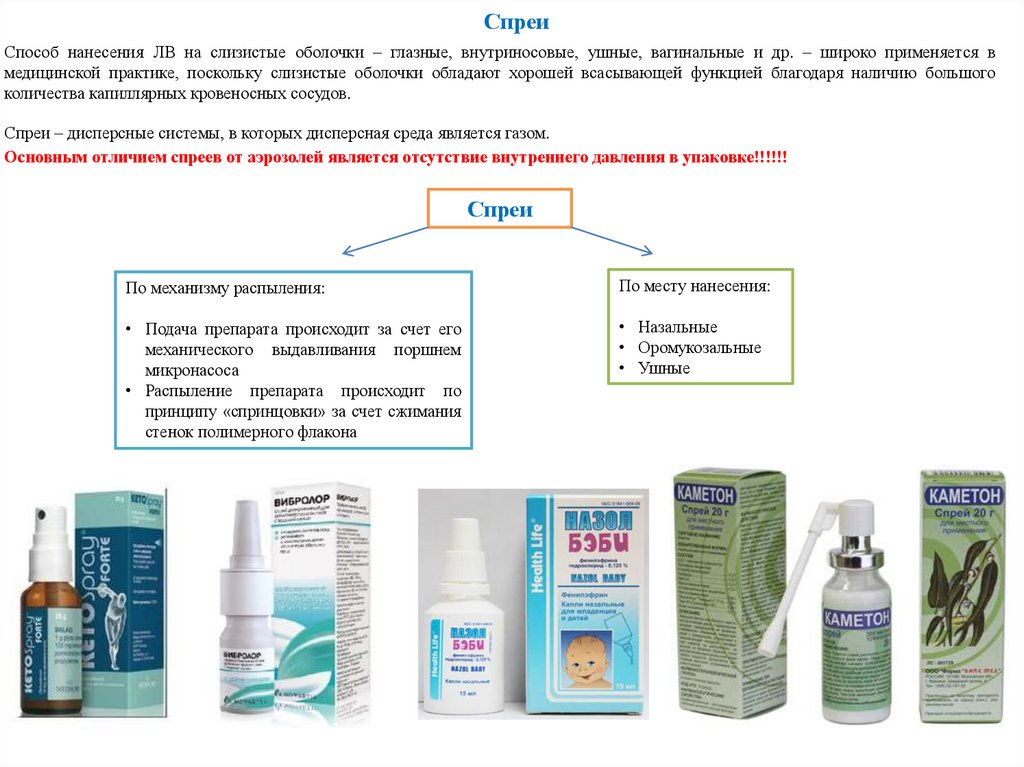 спреи, ушные спреи)