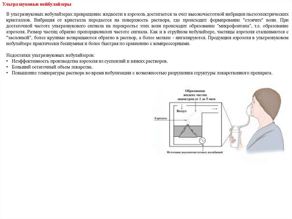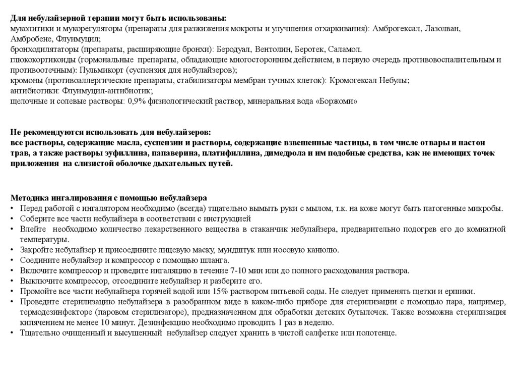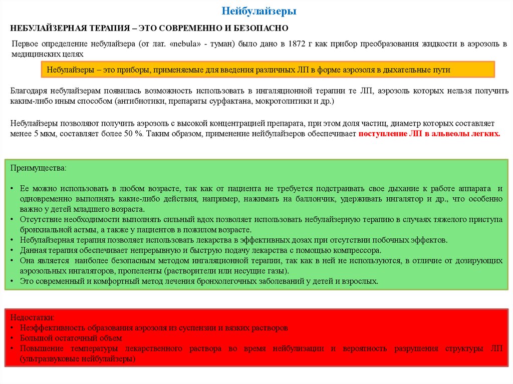 В настоящее время использование различных лекарственных форм – спреев, аэрозолей, небулайзеров для оечения определенных