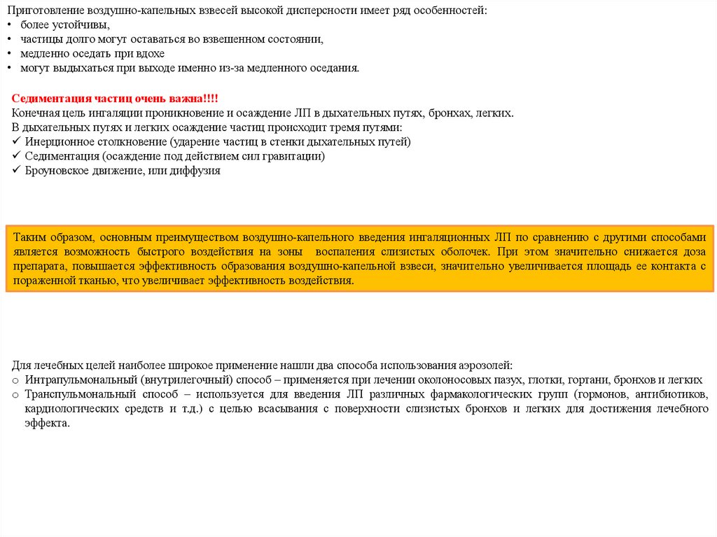 • Аэрозоли (ЛФ в
