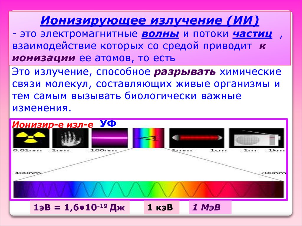 Ионизирующее излучение (ИИ)- это электромагнитные волны и потоки частиц ,