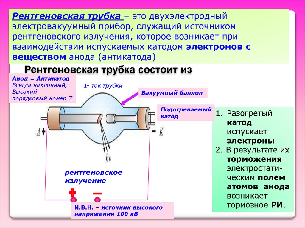Рентгеновская трубка – это двухэлектродныйэлектровакуумный прибор, служащий источником