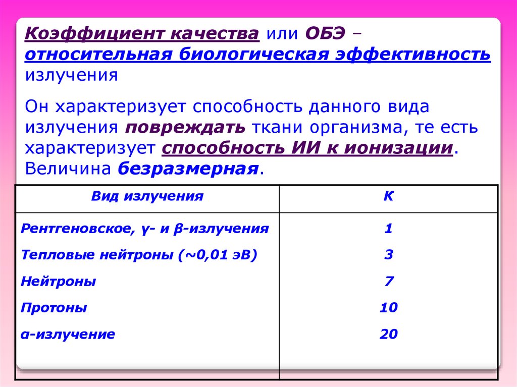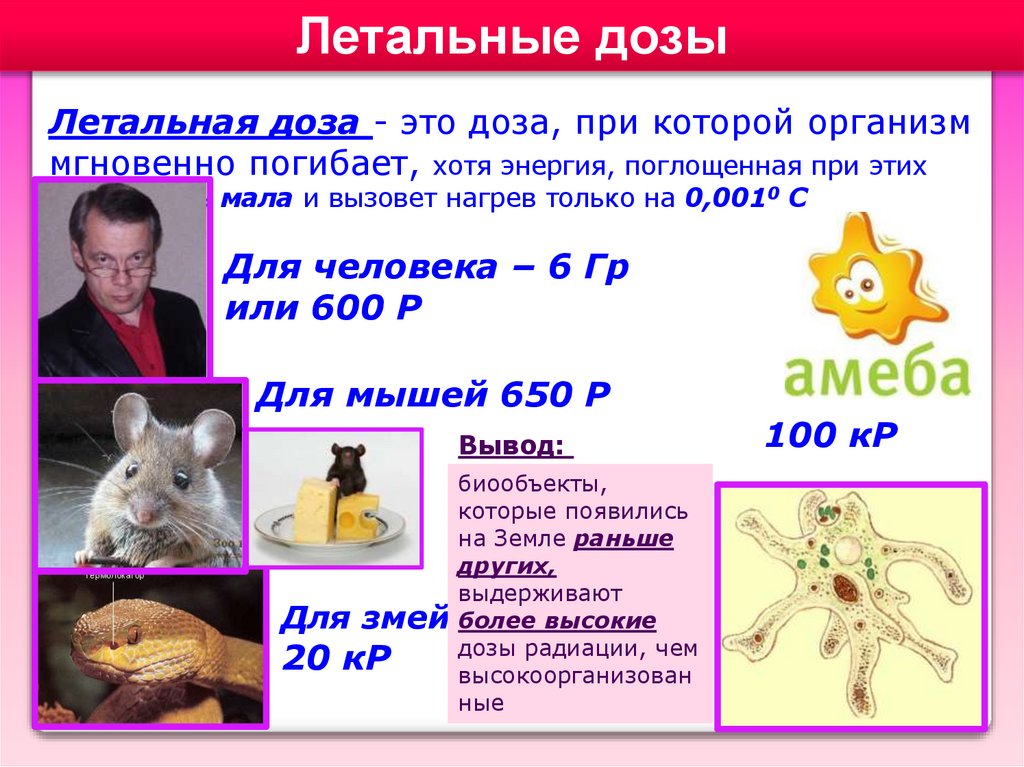 Летальная доза от γ – излучения: 6 Зв (600 бэр).