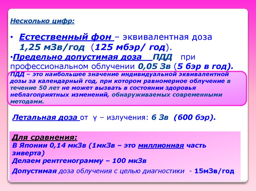 Несколько цифр:• Естественный фон – эквивалентная доза