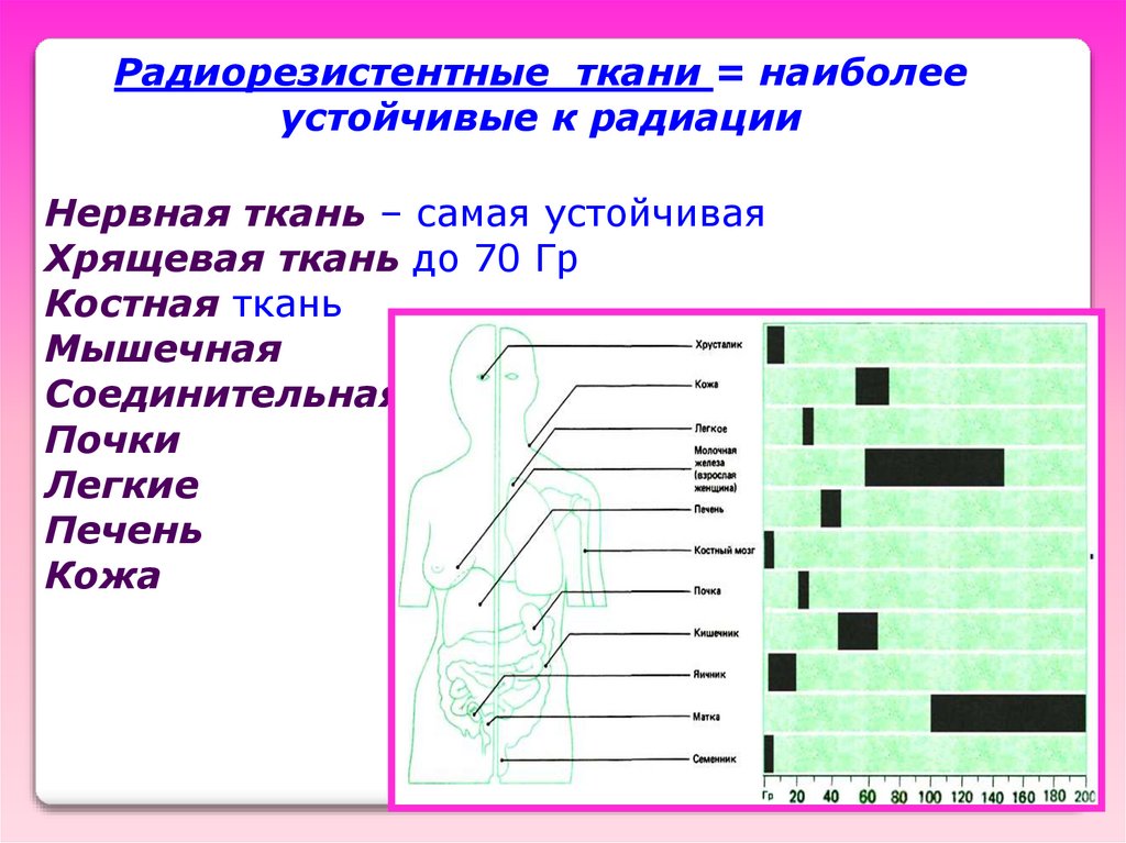 Радиорезистентные ткани = наиболееустойчивые к радиации