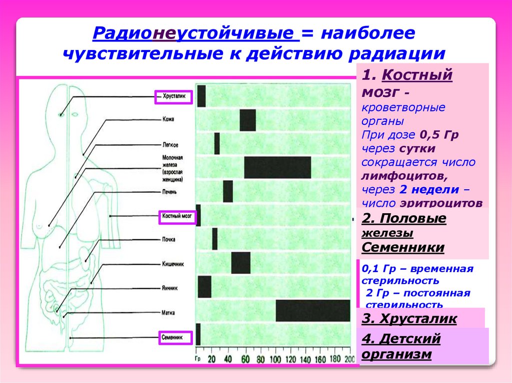 Радионеустойчивые = наиболеечувствительные к действию радиации