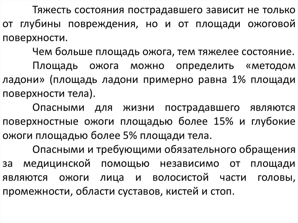 Тяжесть состояния пострадавшего зависит не толькоот глубины повреждения, но и от площади ожоговой