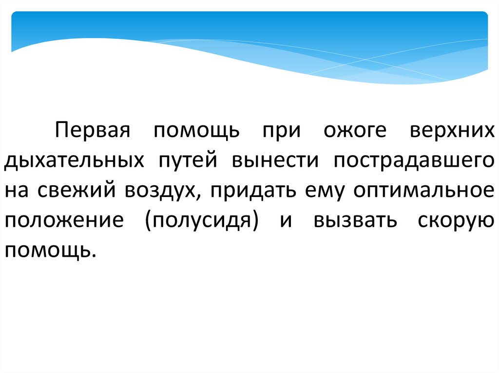 Первая помощь при ожоге верхнихдыхательных путей вынести пострадавшего