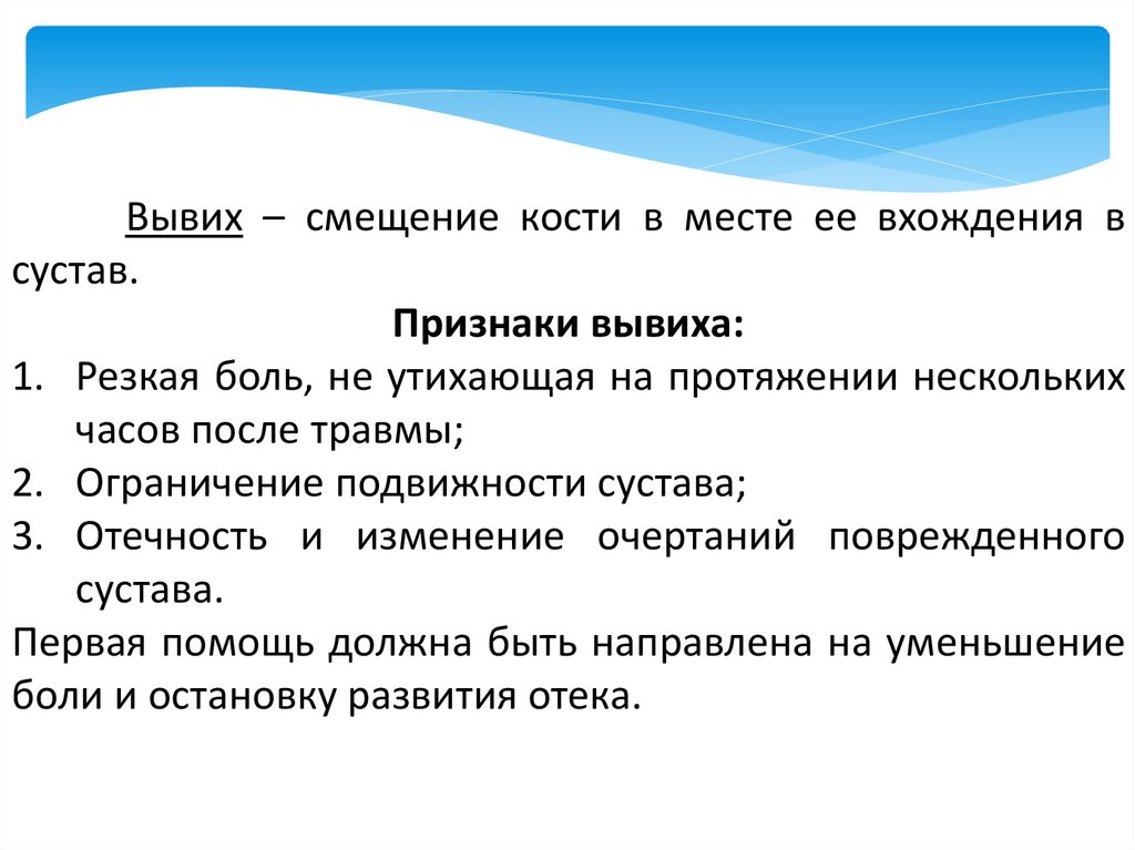 Меры по оказанию первой помощи:Охладить поврежденное место и зафиксировать конечность;