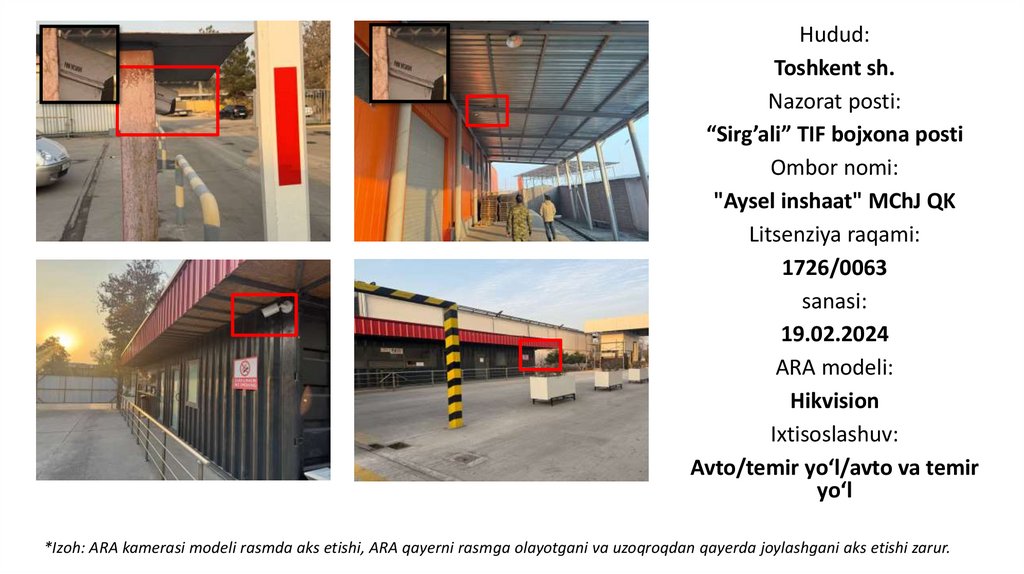 *Izoh: ARA kamerasi modeli rasmda aks etishi, ARA qayerni rasmga olayotgani va uzoqroqdan qayerda joylashgani aks etishi zarur.