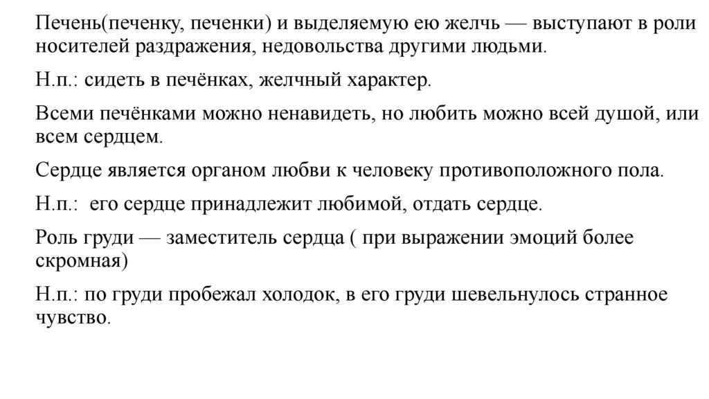 Печень(печенку, печенки) и выделяемую ею желчь — выступают в ролиносителей раздражения, недовольства другими людьми.