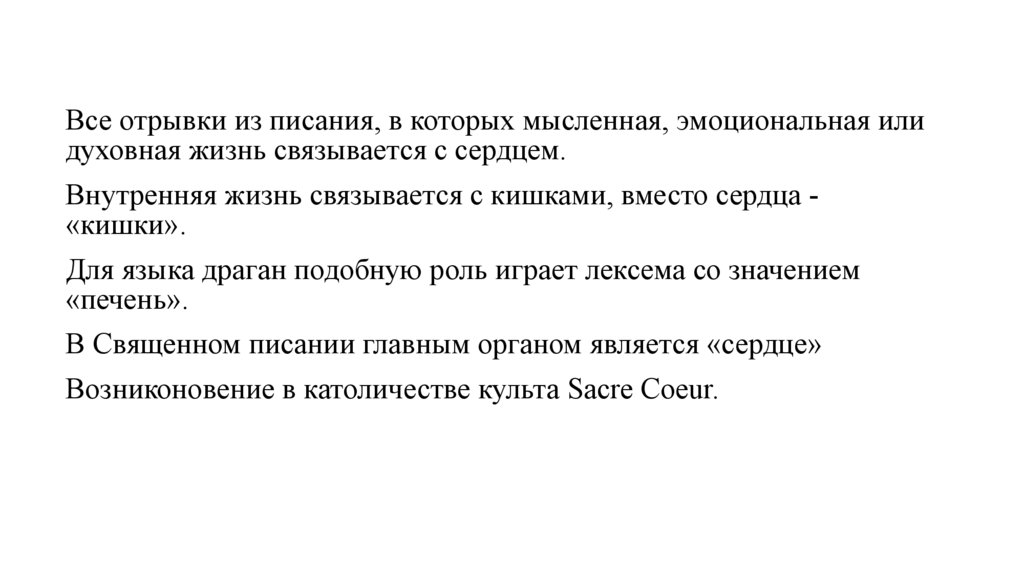 Все отрывки из писания, в которых мысленная, эмоциональная илидуховная жизнь связывается с сердцем.