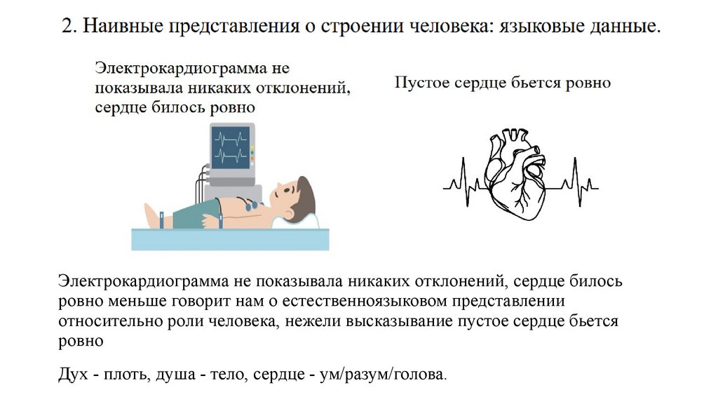 Электрокардиограмма не показывала никаких отклонений, сердце билосьровно меньше говорит нам о естественноязыковом представлении