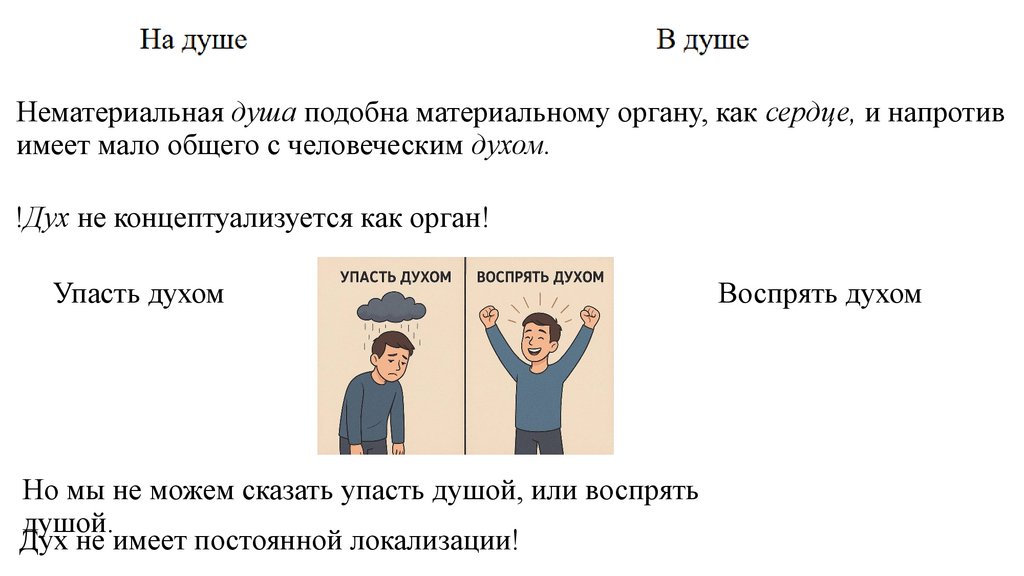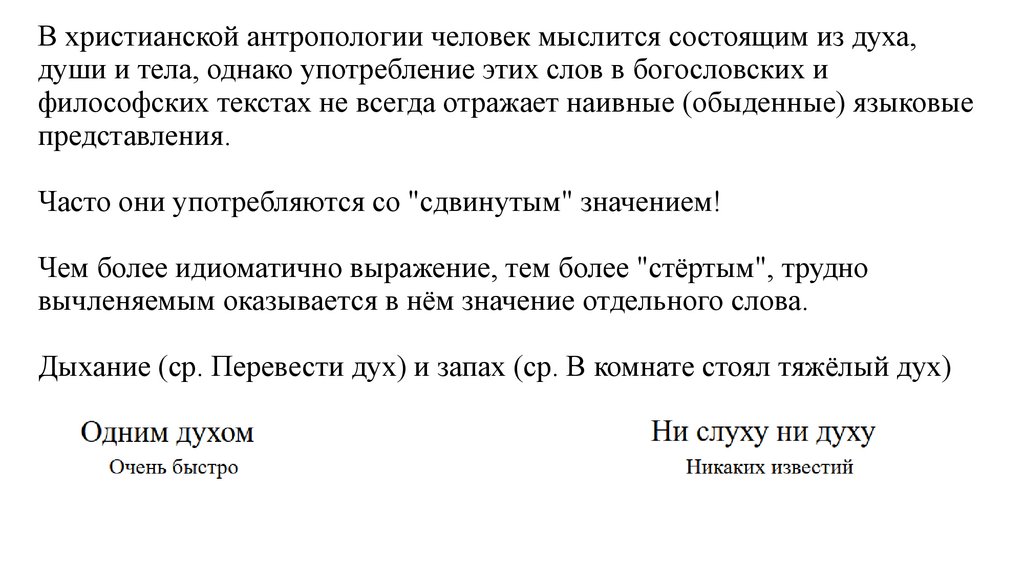 В наивно языковом сознании же заменяют две оппозиции: дух-плоть и