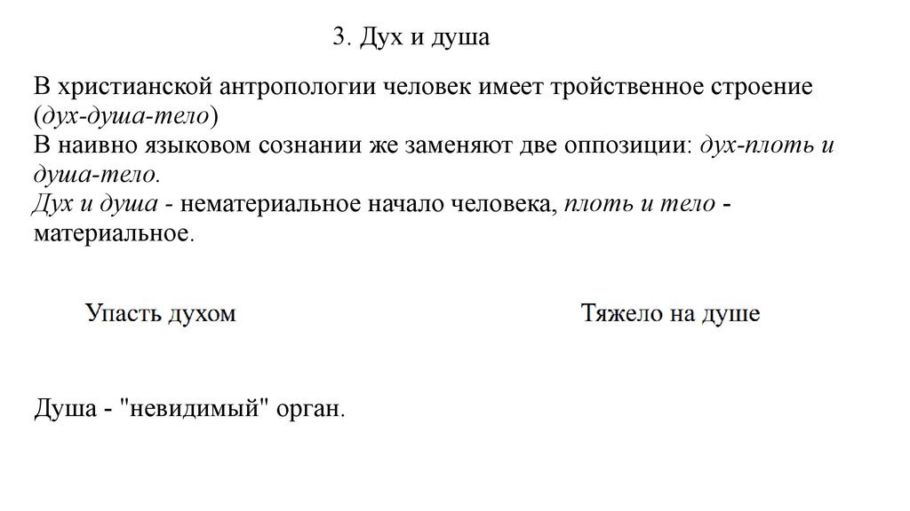 3. Дух и душаВ христианской антропологии человек имеет тройственное строение