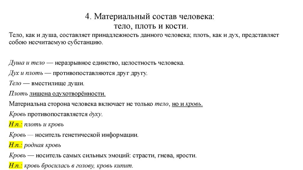 Тело, как и душа, составляет принадлежность данного человека; плоть, как и дух, представляет