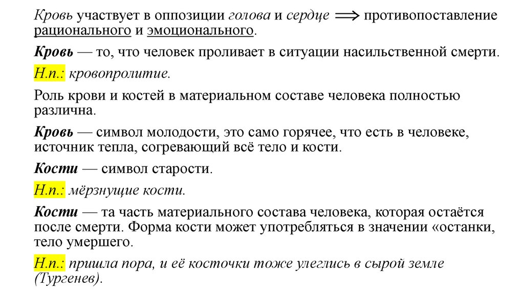 Кровь участвует в оппозиции голова и сердцепротивопоставление