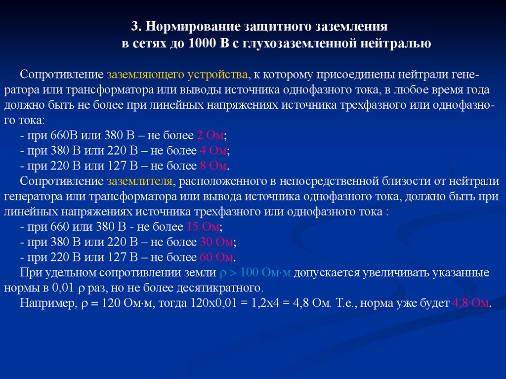 3. Нормирование защитного заземленияв сетях до 1000 В с глухозаземленной нейтралью