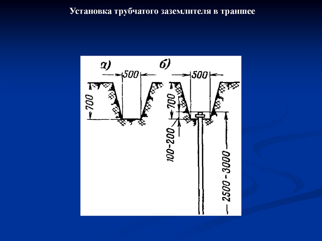 Заземлители закладывают как можно глубже. Это необходимо, чтобы обеспечить контакт с точками грунта, не подверженными промерзанию или высыханию.