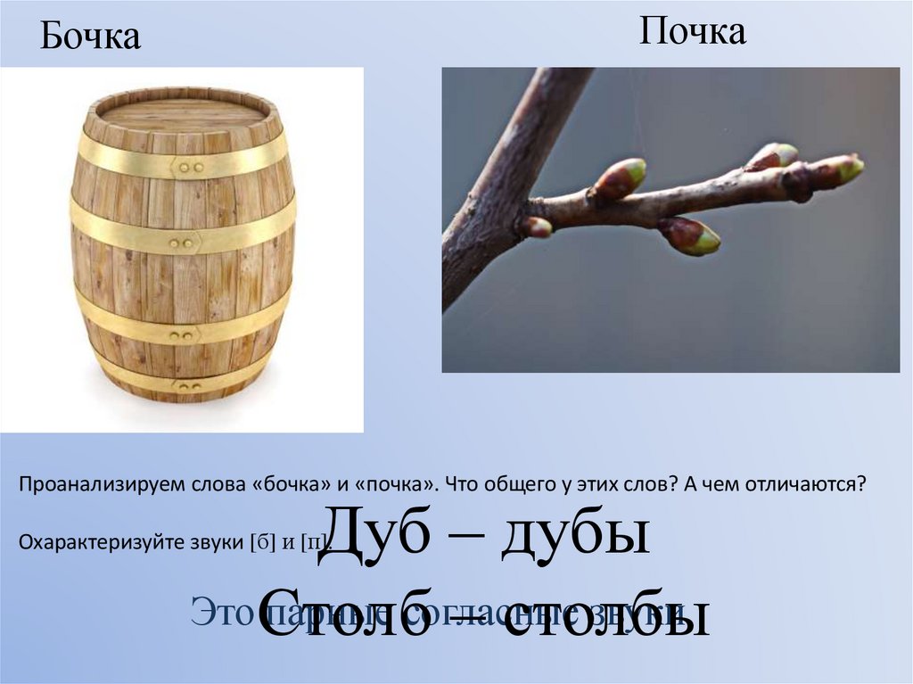 Проанализируем слова «бочка» и «почка». Что общего у этих слов? А чем отличаются?