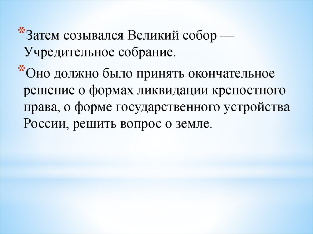 *Затем созывался Великий собор —Учредительное собрание.