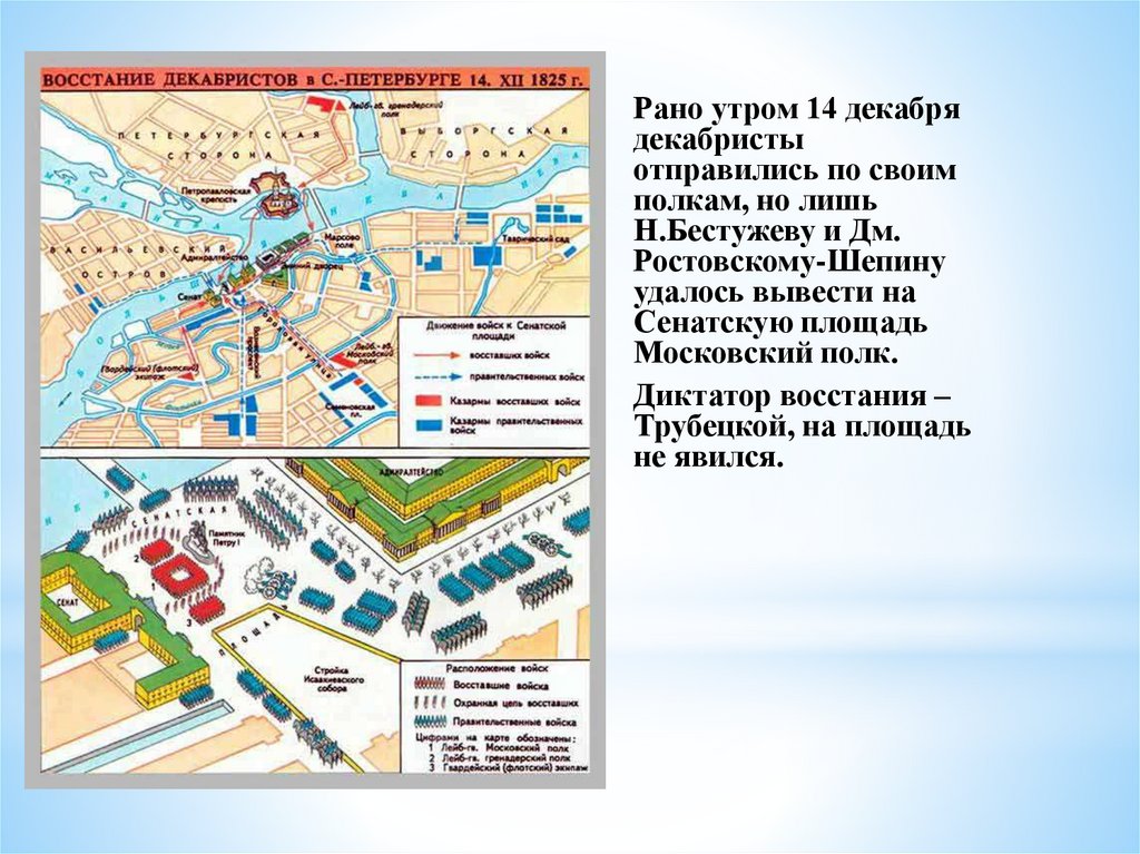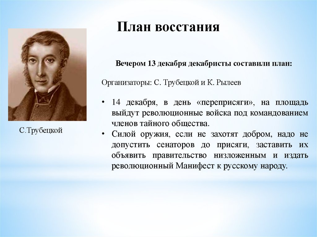 План восстанияВечером 13 декабря декабристы составили план: