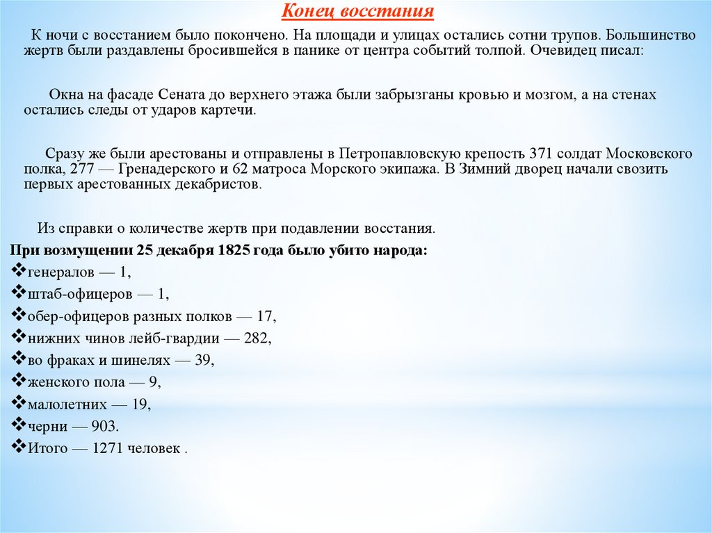 Из справки о количестве жертв при подавлении восстания.