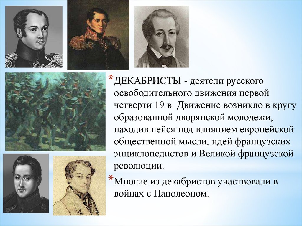 *ДЕКАБРИСТЫ - деятели русскогоосвободительного движения первой