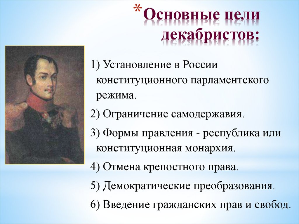 *Основные целидекабристов: