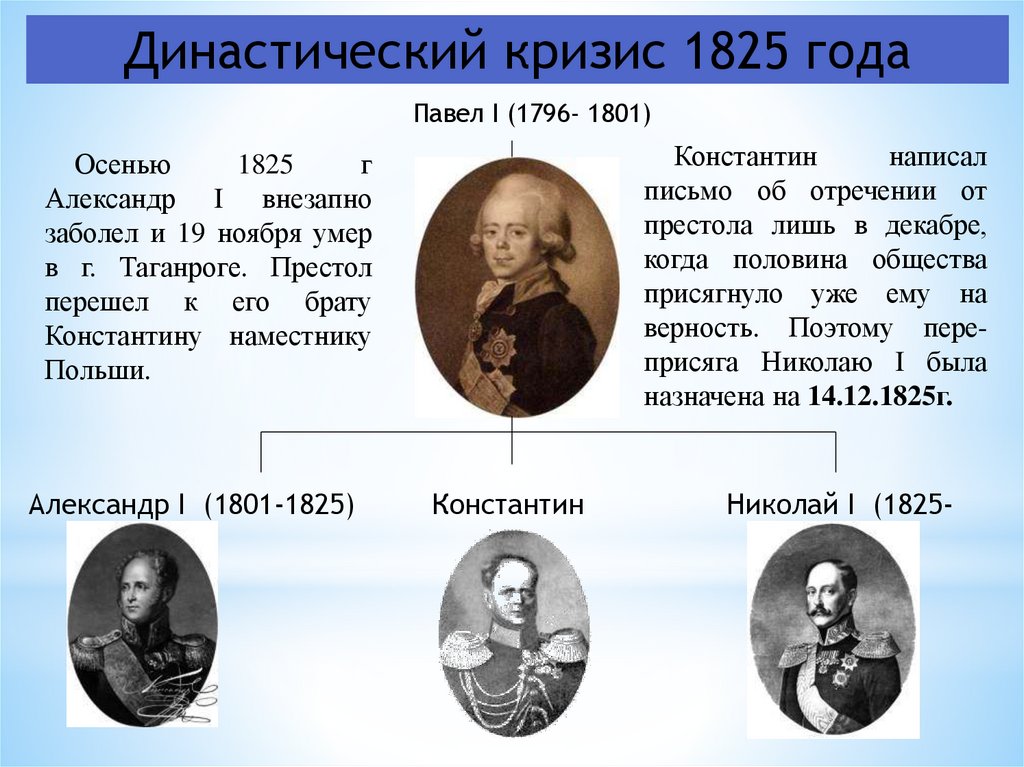Династический кризис 1825 года.Кончина
