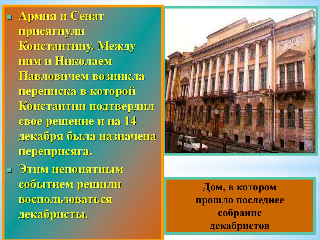 • 14 декабря, в день «переприсяги», на площадь