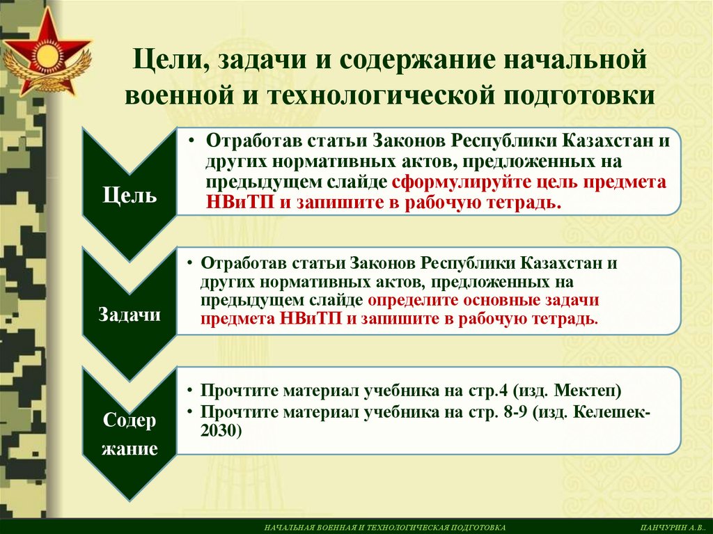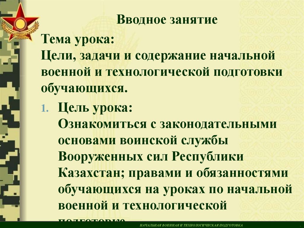 Цели, задачи и содержание начальнойвоенной и технологической подготовки