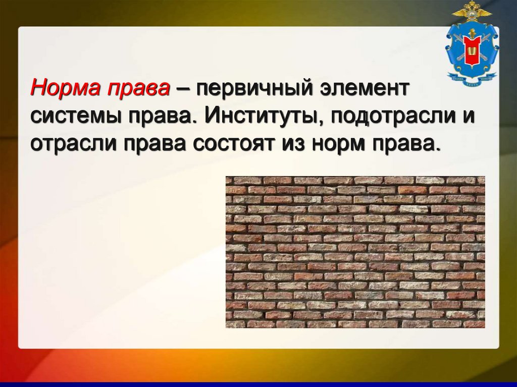 Норма права – первичный элементсистемы права. Институты, подотрасли и