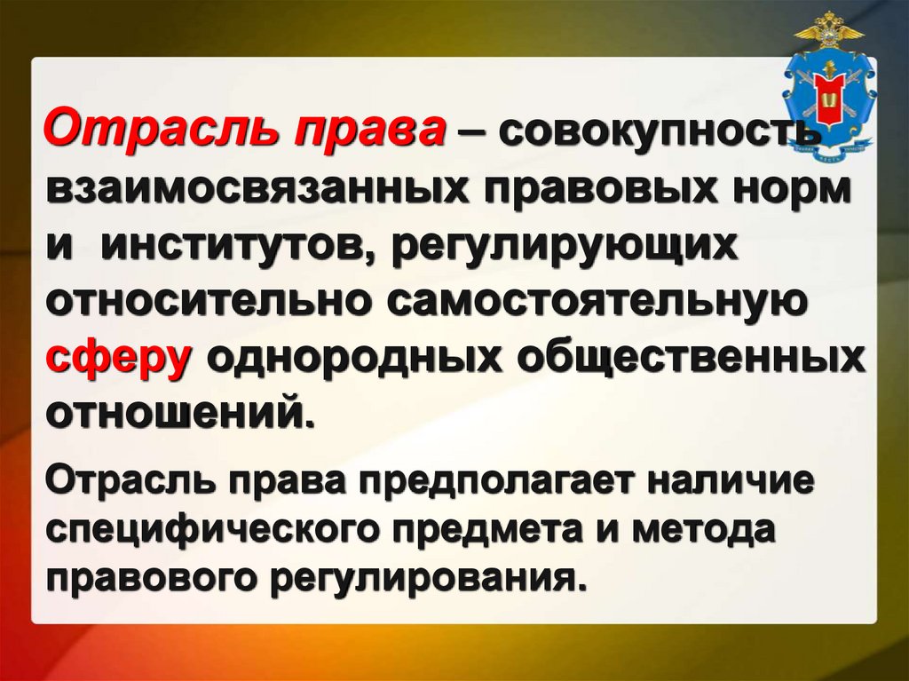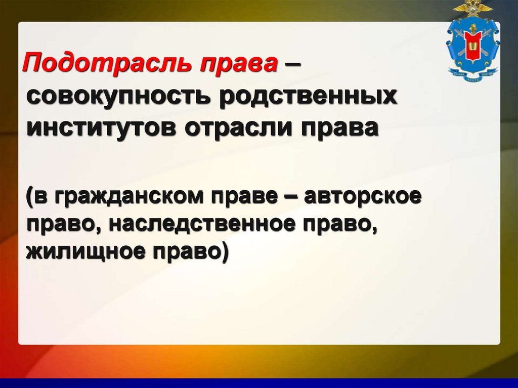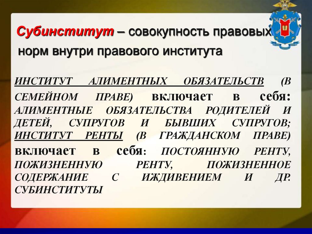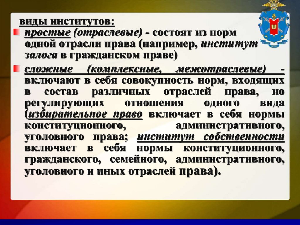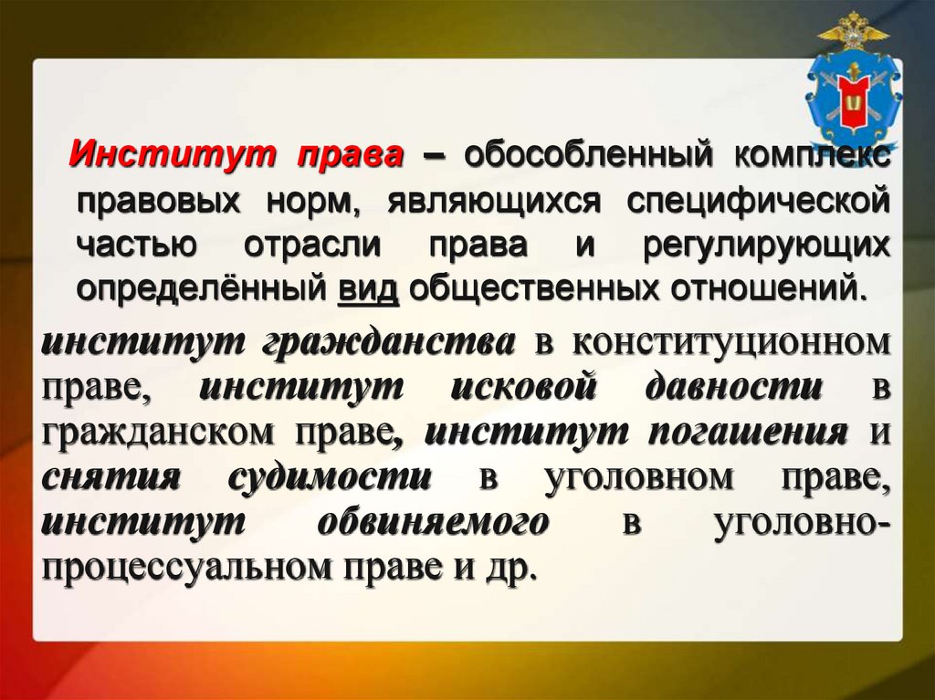 Институт права – обособленный комплексправовых норм, являющихся специфической
